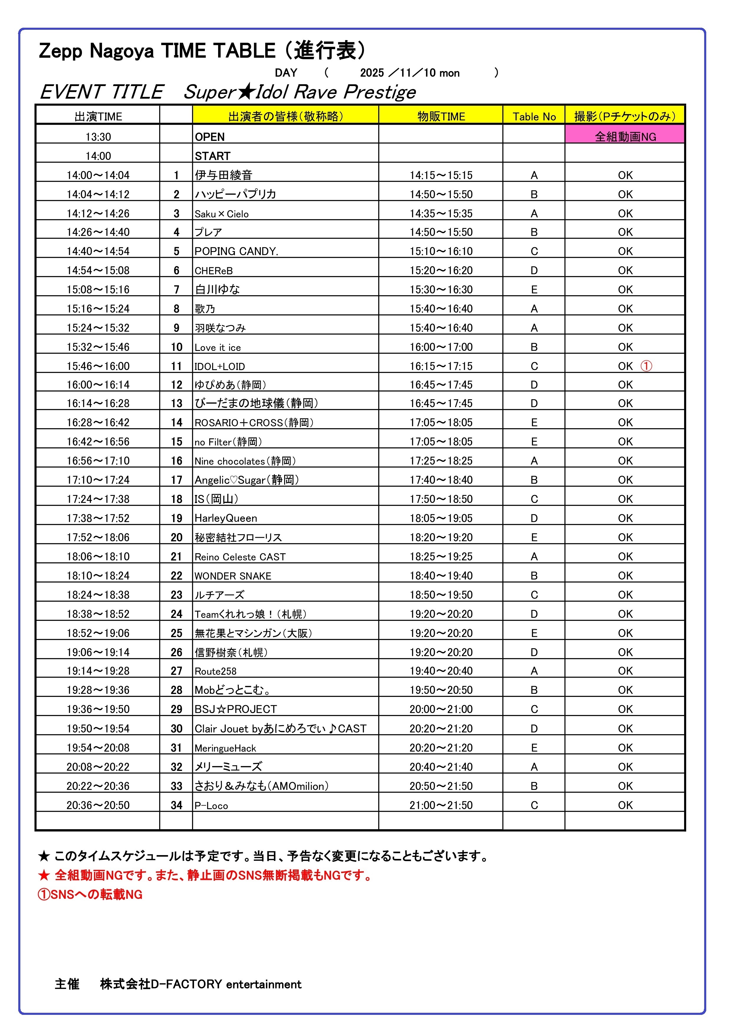 - リフト・モッシュなどの危険行為、他のお客様の迷惑になる行為も禁止させて頂きます。